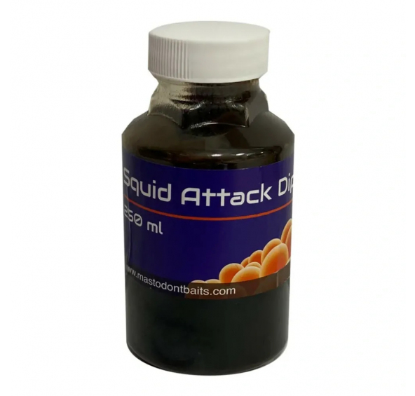 Rybářský dip Mastodont Baits Squid Attack je vysoce efektivní a dobře rozpustný amino dip, který nerozpouští PVA. Rybářské dipy zvyšují účinnost rybářských návnad a zvyšují tak šance na Váš úlovek.