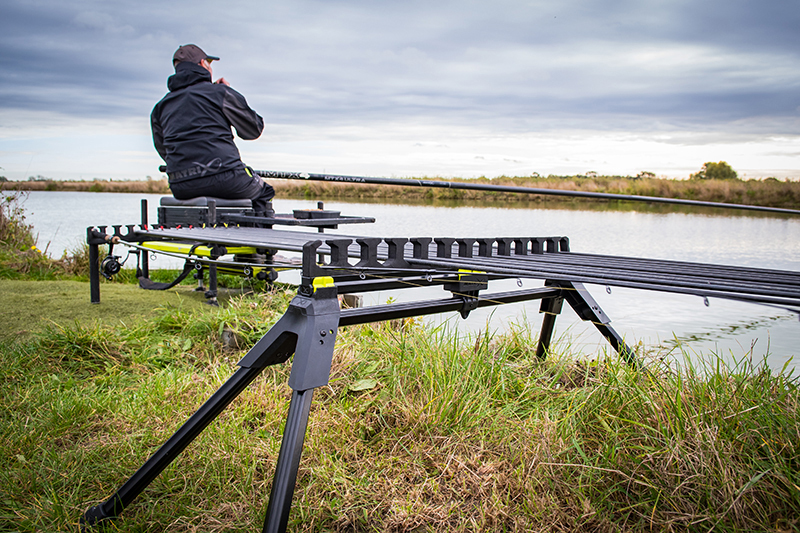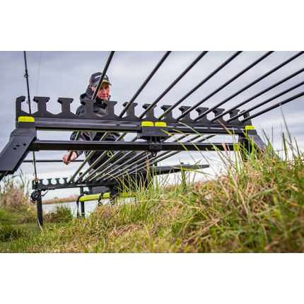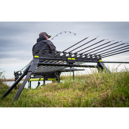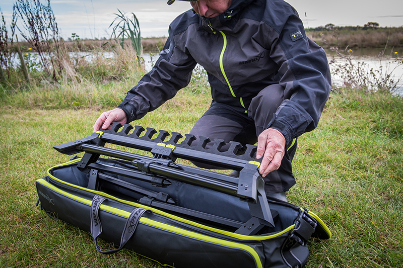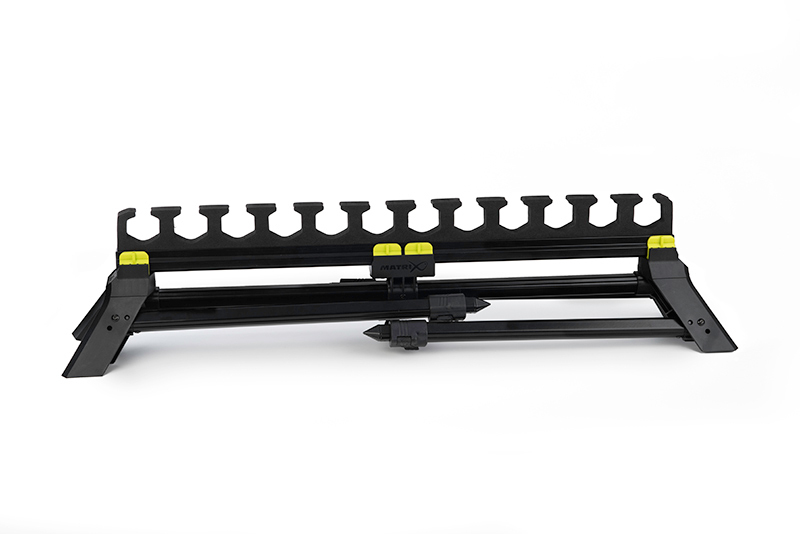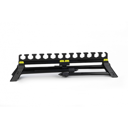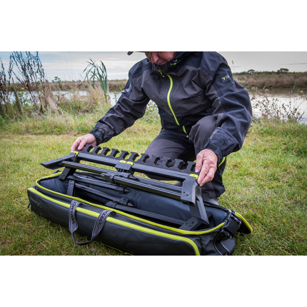 Pro odložení až 12 prutů nebo topsetů Šestiúhelníkové otvory v EVA pěně brání nechtěnému zvednutí topsetů Dvojitě teleskopické nohy (max. výška 670mm) Zvětšený půdorys pro extrémní stabilitu Kompatibilní s našimi prodlužovacími nohami Celková šířka 725mm Hmotnost 2,2kg Složené rozměry V 185 x Š 165 x D 815mm Dodáván v odolném přepravním obalu...