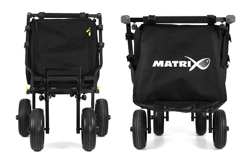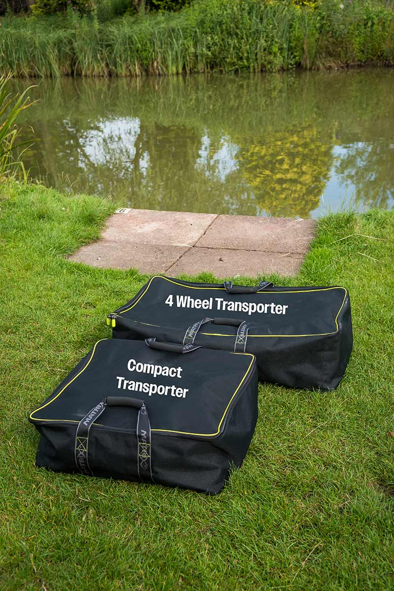 - Vozík složený do dodávané přepravní tašky ve srovnání s vozíkem Matrix 4 Wheel Transporter je 43%