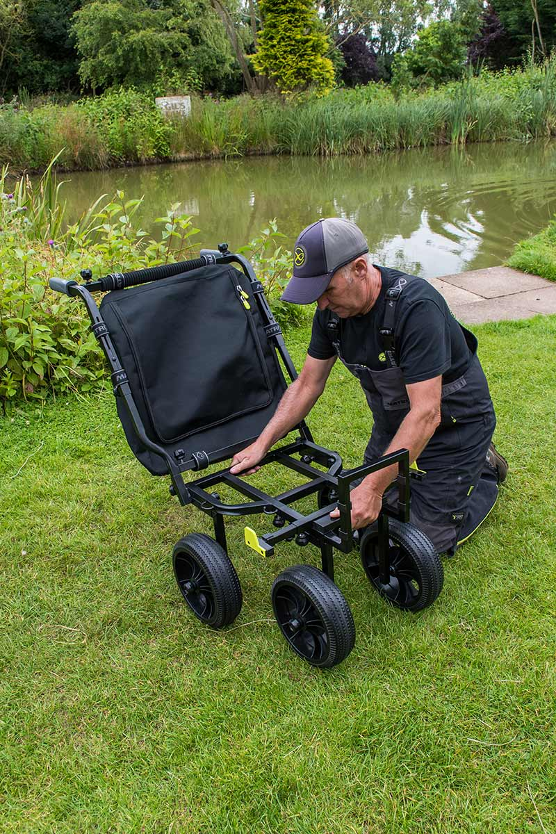 Nabízí všechny vlastnosti 4 kolového přepravního vozíku v kompaktním provedení Ideální pro rybáře nepřevážejícím spoustu vybavení nebo pro ty s omezeným prostorem v autě Vozík složený do dodávané přepravní tašky ve srovnání s vozíkem Matrix 4 Wheel Transporter je 43% Dostatečná skladná plocha díky roztažitelnému rámu Rám lze použít jako stand...