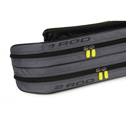 Pouzdro navržené pro komfortní přepravu dvou navázaných prutů Pevná PE deska tvoří tuhou vnější část pouzdra chránící pruty při převozu Vnější kapsa ideální pro podběrákové tyče a feederová ramena Dva oddíly na zip pro oddělení prutů Ultra odolné velké zipy na všech oddílech Vnitřní upínací pásky na suchý zip Vyrobené z odolného Polyesterového mate...