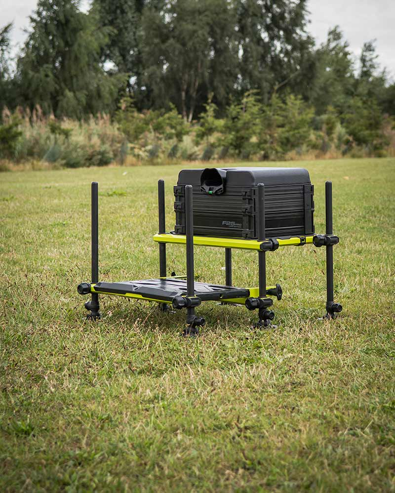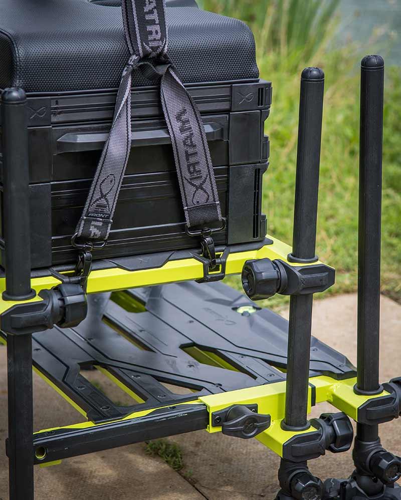 Kompaktní sedačka s H-rámem vyrobená z lehkého hliníkového materiálu pro snadnou přepravu a zachování nízké hmotnosti, přesto velmi pevná a stabilní. V nabídce limetkový a černý rám. Rám a podlážka přesně vyrobené z extrudovaného hliníku. Černě eloxované teleskopické nohy o průměru 25mm. Výsuvná podlážka s otočnými zajišťovacími kolíky. Hlavní uta...