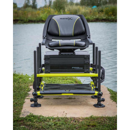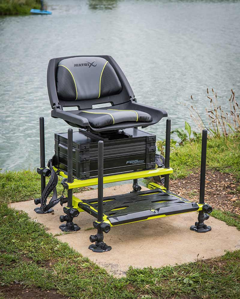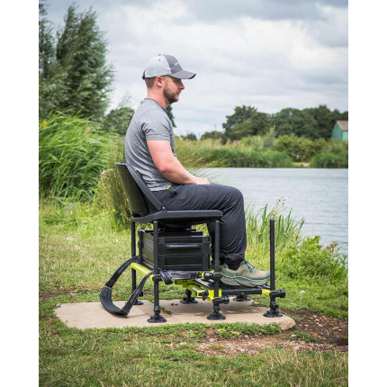 Kompaktní sedačka s H-rámem, ideální pro lov na feeder, vybavená modulem s otočným křeslem Swivel Seat Unit poskytující větší pohodlí a oporu zad.