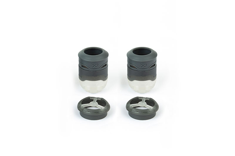 Tyto nové kalíšky pomohl navrhnout a otestovat Jamie Hughes jeden z nejlepších rybářů na komerčních revírech. Dvě víčka a prodloužení umožňuji širokou škálu přístupu krmení a dávají vám tak absolutní kontrolu nad lovným místem. Mikro otvory ve dně kalíšku usnadňují vysypání návnady a umožňují krmit na ještě menší plochu než kdykoliv předtím..