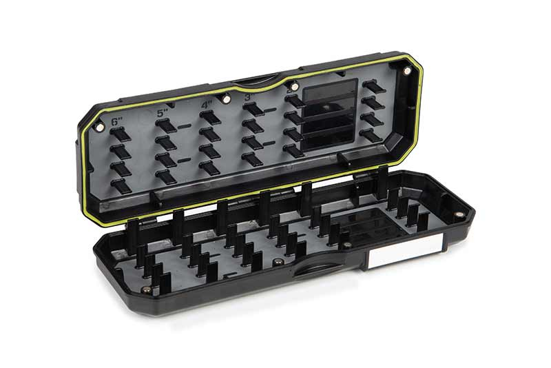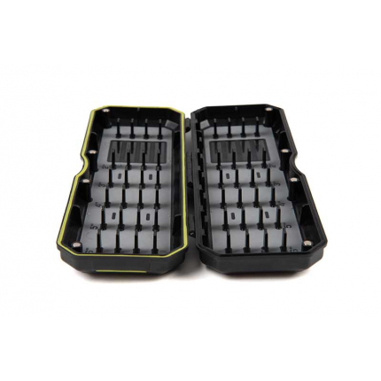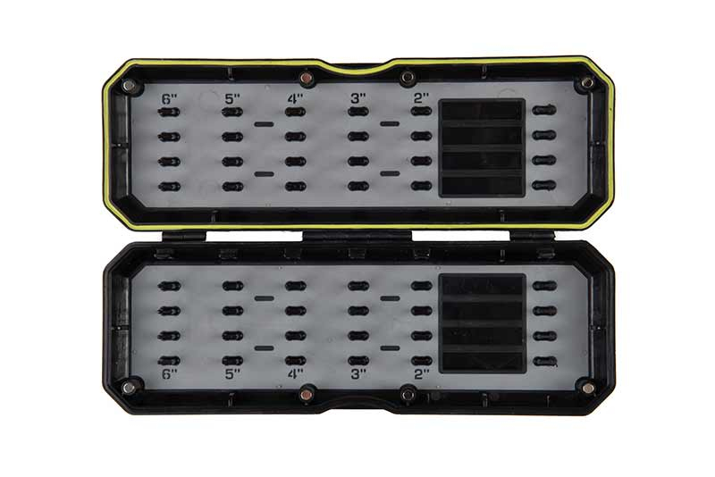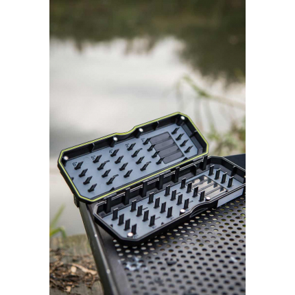 Tenké pouzdro na návazce ideální pro návazce v délce 5 a 15 cm 8 kolíčků na háčky každý až pro 10 háčků (80 háčků celkem). Vnitřní měřící kolíčky pro přesné určení potřebné délky návazce. Gumový povlak neklouže na površích. Nalisované gumové těsnění brání vniknutí vody Bezpečné magnetické zavírání. Součástí vnější i vnitřní štítky Rozměry – D20 x ...