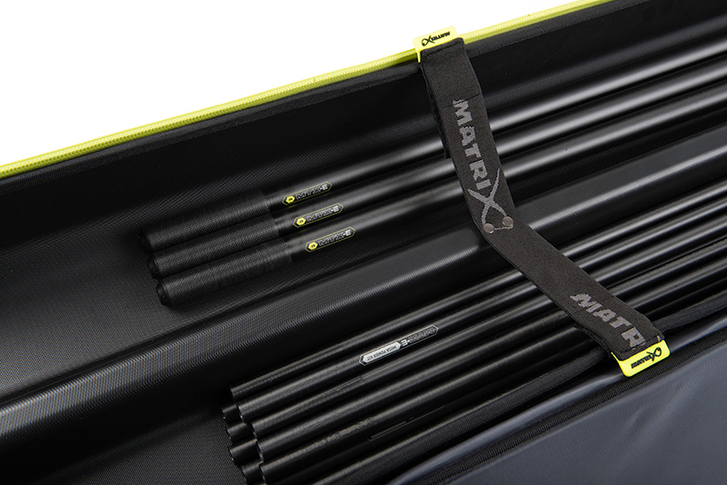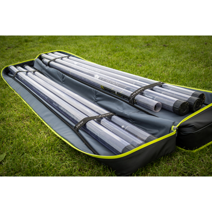 - Velká zadní kapsa pojme až šest plastových trubek s děličkou i další nezbytnosti jako jsou podběráková rukojeť, nebo deštník