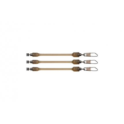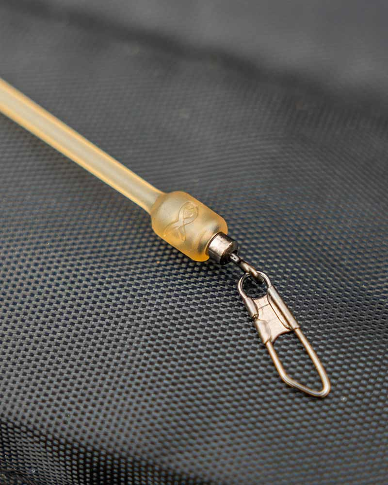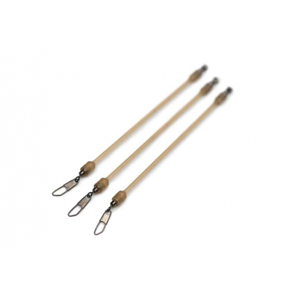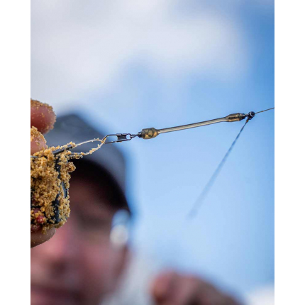 Unikátní design v sobě spojuje obratlík a karabinku zalisovanou do závěsky Tento design minimalizuje slabá místa nebo místa, o které se může zachytit kmenový vlasec Závěska je vylisovaná z extrémně odolného plastu Závěska tlačí kmenoví vlasec od krmítka a brání tak jeho zamotání Průsvitná Khaki barva nenápadná pod vodou K dostání v délkách 40 mm a ...