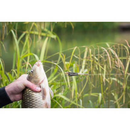 - Zvýšená přední hrana brání uvolnění návnady při dopadu