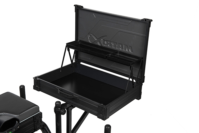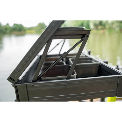 Navržený pro zakrytí nástrah s maximálním úložným prostorem. Sklopné opěrné rameno umožňuje použít stolek bez podpěrných noh. Unikátní sklopná polička navržená pro bezpečné odložení drobností Napínací panty umožňují, aby víko zůstalo otevřené bez nastavování. Odolná hliníková základna s víkem vylisovaným z ABS Vylepšená pozice kování pro zvednutí o...