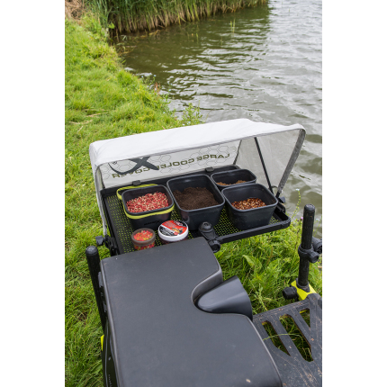 Poskytuje ochranu nástrah před sluncem Světlá barva a síťované provětrávání brání přehřátí nástrah Unikátní koncept umožňuje připnutí i odepnutí k odkládacímu stolku Stahovací matice umožňují zajištění krytu v různých polohách Odolná žebra z nerezové oceli nabízí skvělou tuhost Lehká polyesterová látka Ve dvou velikostech Large a XL Kompatibilní po...