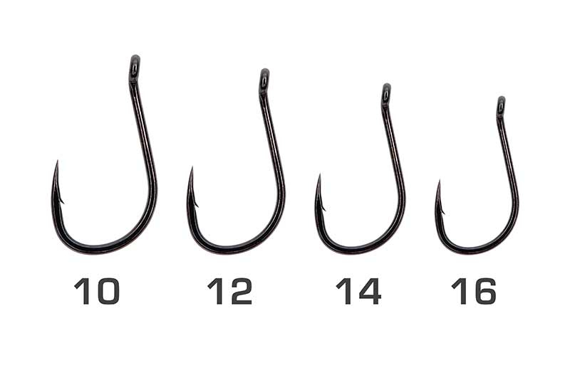 - Extra silné háčky s vyhnutým očkem a protihrotem.