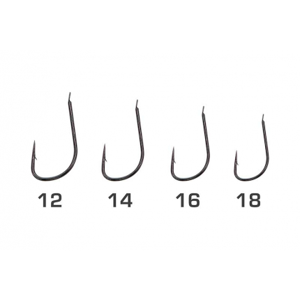 Háček Wide gape s rovnou špičkou a protihrotem Ideální pro červy, kukly a žížaly. Ultra-odolná povrchová úprava černý nikl. Extrémně ostrý a vyvážený háček Pro lov na feeder na přírodních revírech K dostání ve velikostech 12,14,16,18...