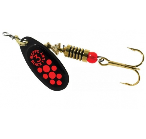 Mepps Třpytka Black Fury zlatá červené tečky