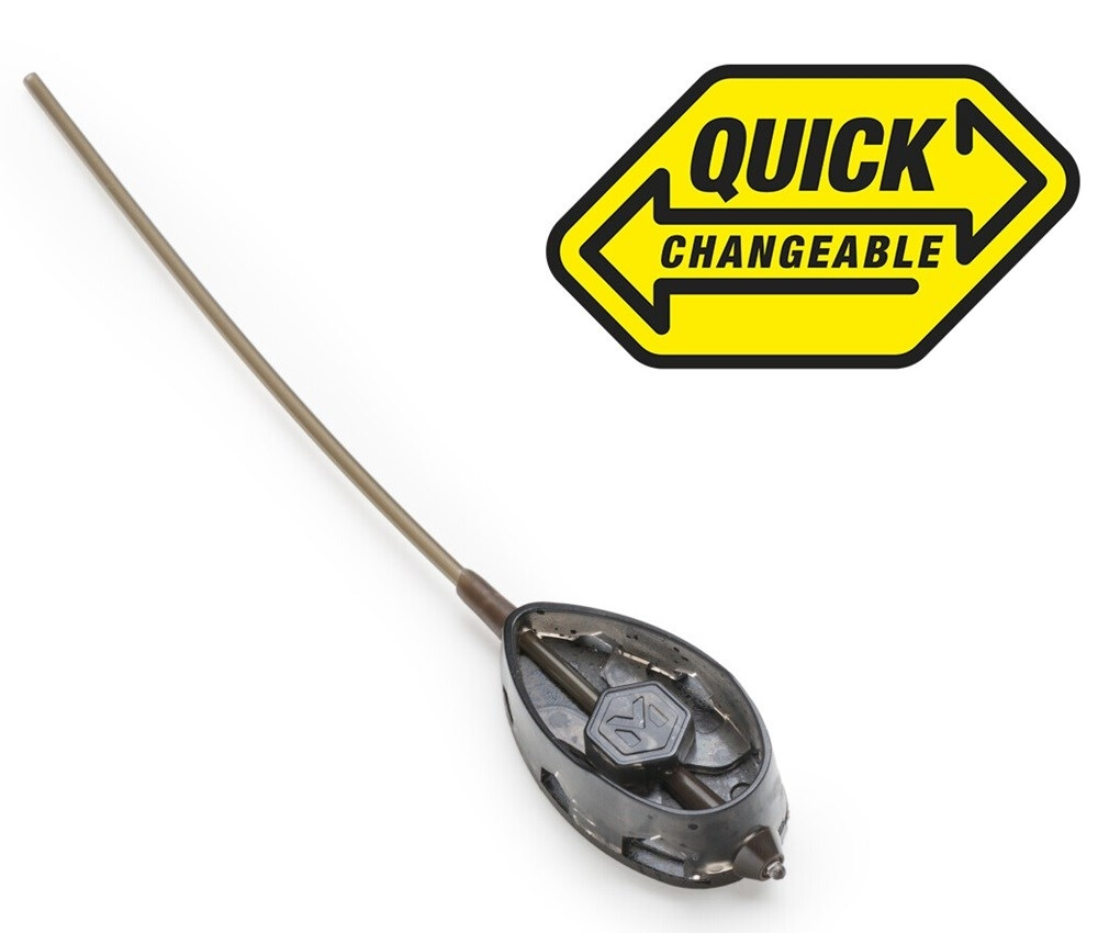 Ten umožňuje snadnou výměnu krmítka na hotové montáži za jiný typ nebo velikost velikost krmítka QMR během několika vteřin. Tělo krmítka je precizně odlito z odolného plastu v kouřově olivovém zabarvení. Zátěže na spodní straně krmítka jsou v maskovacím designu. Tvar krmítka je navržen pro použití s hrubšími návnadami a mikropeletami. Zvýšená přední část spolehlivě drží návnadu i při lovu na extrémně dlouhé vzdálenosti. Krmítko se dodává s adaptérem pro rychlou výměnu připojeného návazce a převlekem proti zamotání.