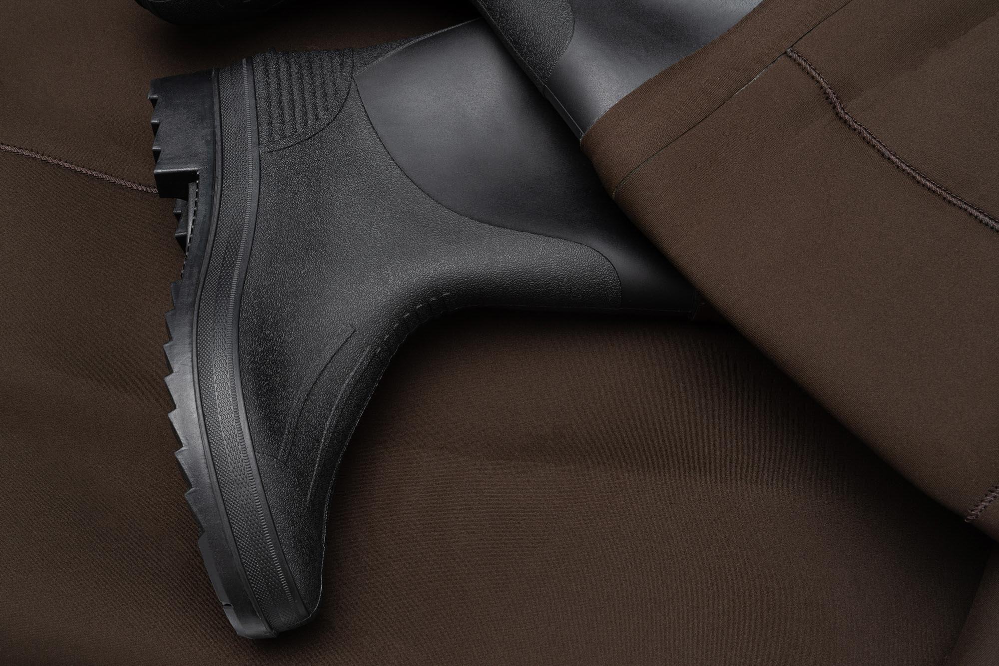 Správná tkanina zaručuje tepelnou izolaci a udržuje teplotu i v ledově studené vodě. Gumová podrážka s chráničem poskytuje veškerou potřebnou stabilitu.