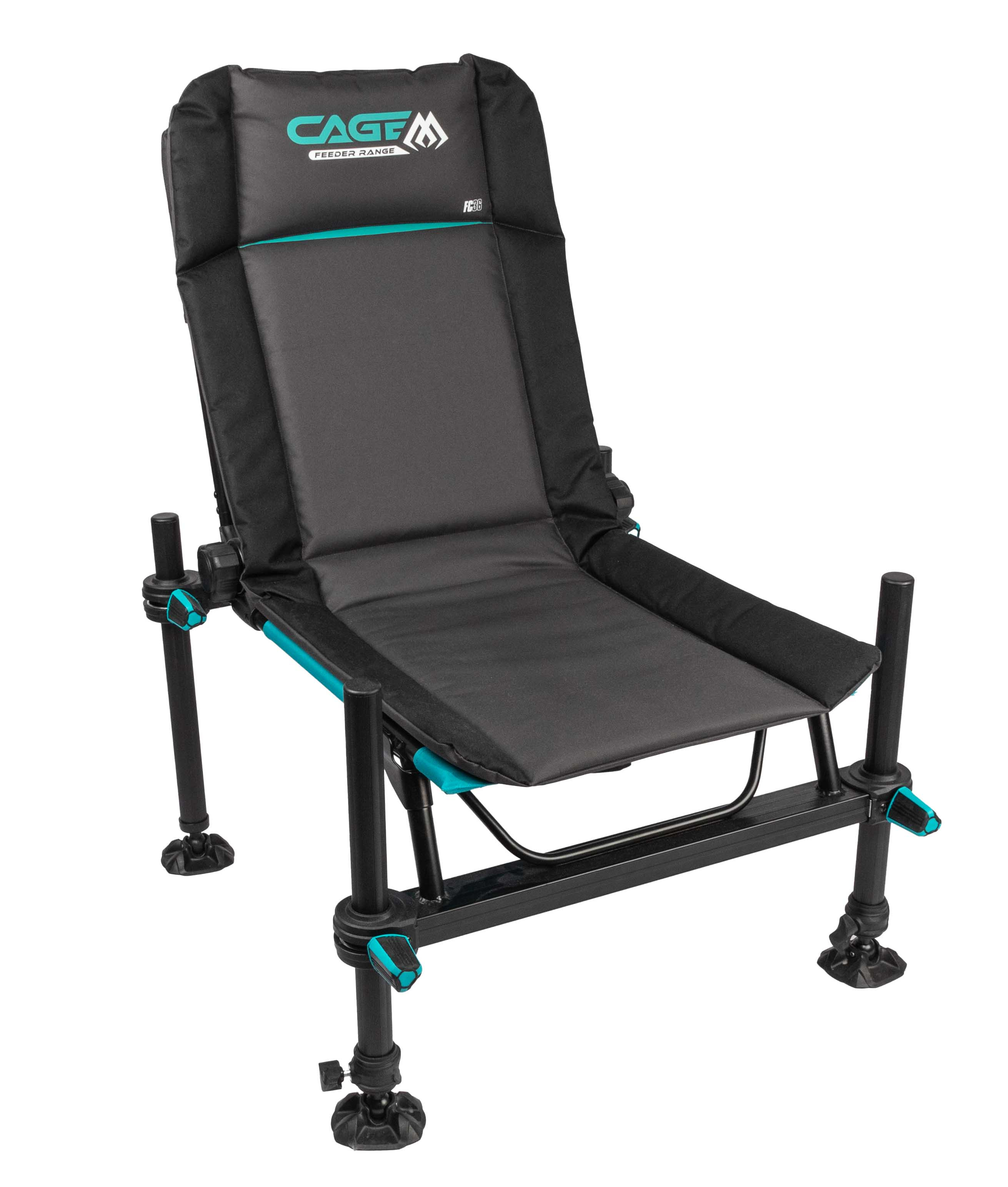 Prostorné křeslo se čtyřmi nohami D36. Přední pár má systém rychlého sklápění, teleskopické nastavení a závity pro montáž příslušenství. Silná konstrukce, pohodlné sezení a možnost montáže ploch, ramen i doplňků.