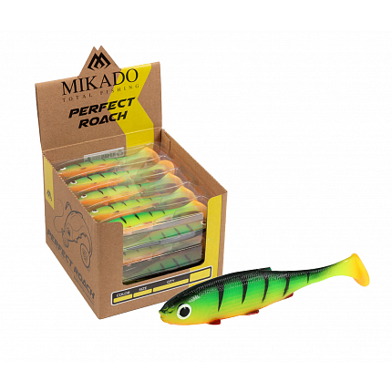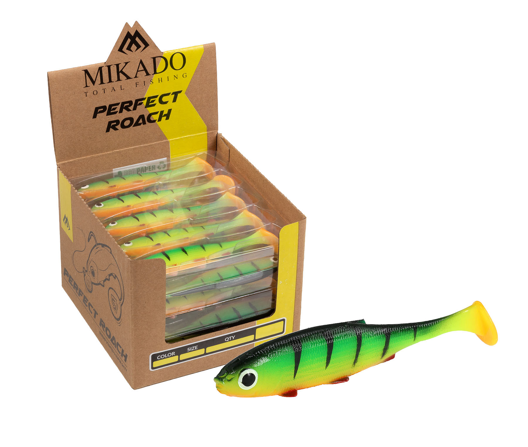 Perfect Roach je nástraha, která si už při prvních testech získala uznání rybářů po celém světě díky své neobyčejné účinnosti při lovu candátů, okounů, štik a bolenů. Kombinace správně zvolené směsi ekologického a měkkého silikonu bez ftalátů (Phthalates free), spolu s ručním lakováním nejvyšší kvality, umožnila firmě Mikado vytvořit nejvěrnější imitaci plotice, jaká je na trhu dostupná. Nástraha se vyznačuje vynikající prací v jakýchkoli podmínkách, bez ohledu na použitou hmotnost jigové hlavičky, díky čemuž žádný dravec kolem ní nepropluje lhostejně!