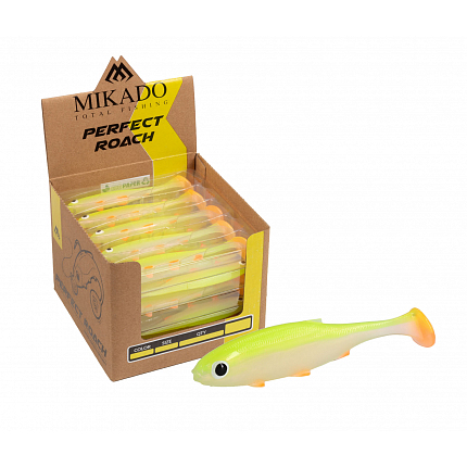 Perfect Roach je nástraha, která si už při prvních testech získala uznání rybářů po celém světě díky své neobyčejné účinnosti při lovu candátů, okounů, štik a bolenů. Kombinace správně zvolené směsi ekologického a měkkého silikonu bez ftalátů (Phthalates free), spolu s ručním lakováním nejvyšší kvality, umožnila firmě Mikado vytvořit nejvěrnější imitaci plotice, jaká je na trhu dostupná. Nástraha se vyznačuje vynikající prací v jakýchkoli podmínkách, bez ohledu na použitou hmotnost jigové hlavičky, díky čemuž žádný dravec kolem ní nepropluje lhostejně!