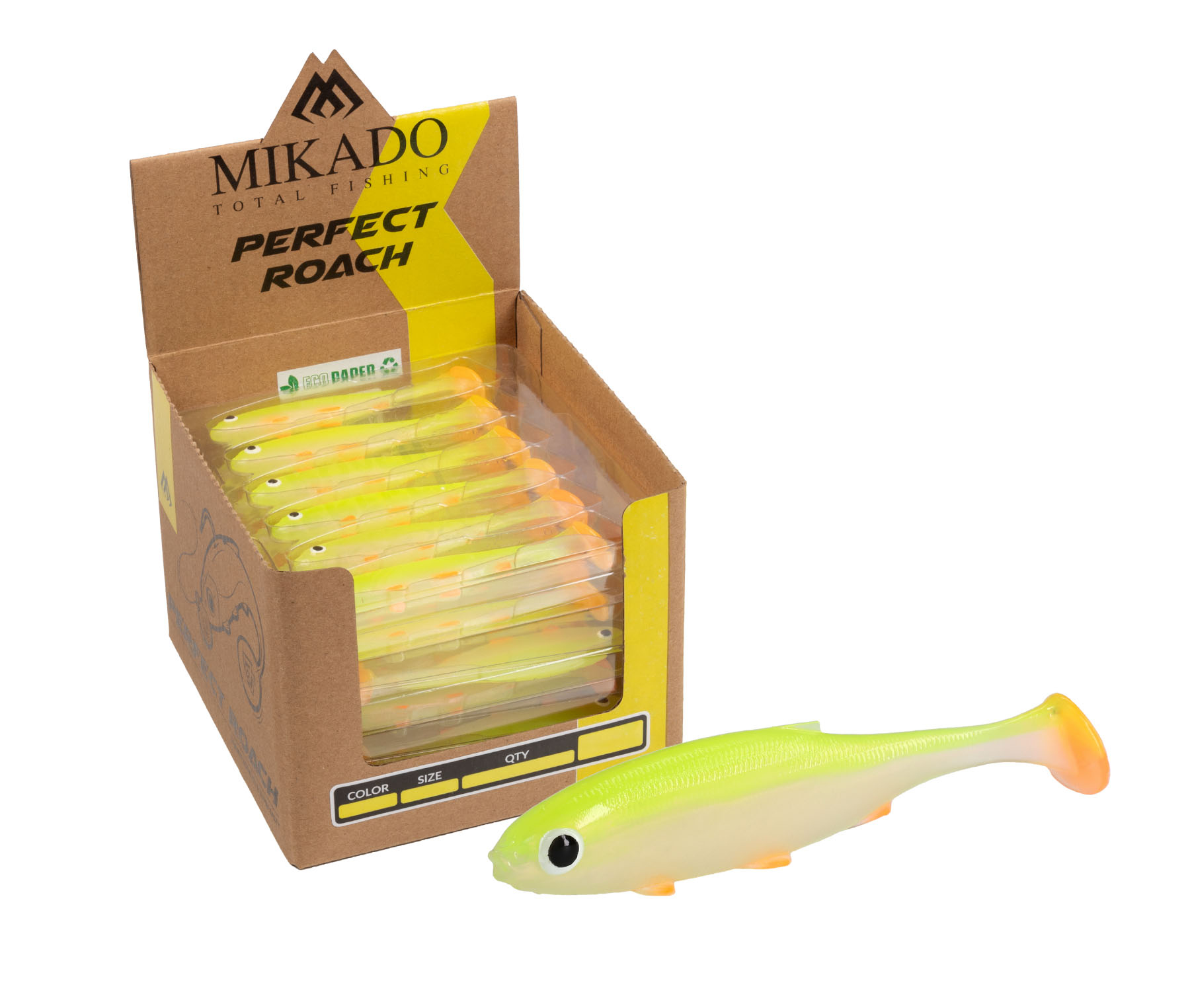 Perfect Roach je nástraha, která si už při prvních testech získala uznání rybářů po celém světě díky své neobyčejné účinnosti při lovu candátů, okounů, štik a bolenů. Kombinace správně zvolené směsi ekologického a měkkého silikonu bez ftalátů (Phthalates free), spolu s ručním lakováním nejvyšší kvality, umožnila firmě Mikado vytvořit nejvěrnější imitaci plotice, jaká je na trhu dostupná. Nástraha se vyznačuje vynikající prací v jakýchkoli podmínkách, bez ohledu na použitou hmotnost jigové hlavičky, díky čemuž žádný dravec kolem ní nepropluje lhostejně!