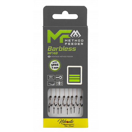 Hotové method návazce na háčcích MF14 bez protihrotu. Extrémně ostré, pevné, s koncem Push Stop, gumička nebo trn. Na pletené šňůře i monofil....