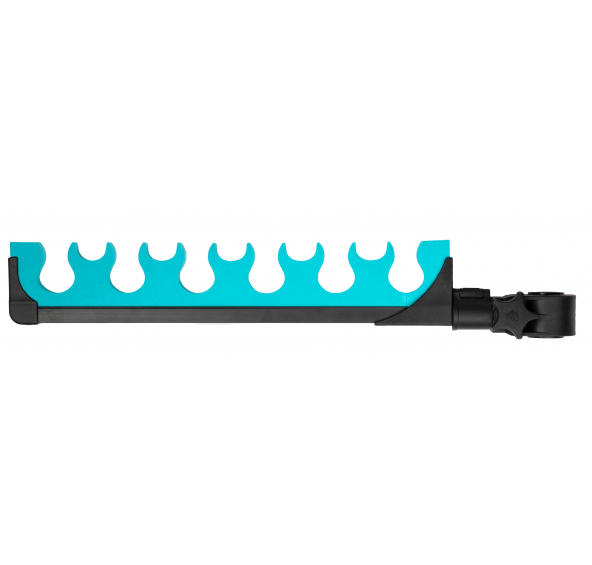 Hřeben pro 6 prutů je ideální volbou pro ty, kteří potřebují víc místa na náhradní sestavy nebo podběrák – ať už při závodech, nebo rekreačním chytání. Montáž pomocí univerzálního držáku na nohu 25/30/36 mm.