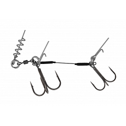 Dvojitý stinger se šroubem, vyrobený z obratlíků a japonského titanového lanka. Osazen silnými trojháčky – dle modelu v UV aktivní oranžové nebo klasické černé. Ideální pro velké gumové nástrahy 18-22cm..