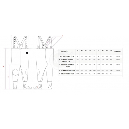 Zvolili jsme momentálně nejkvalitnější materiál na trhu Plavitex s gramáží 700g/m2 ve firemní černé barvě s decentním logem Mikbaits. Prsačky mají výztuhu kolen chránící nejvíce namáhaná místa a velmi pohodlnou širokou
