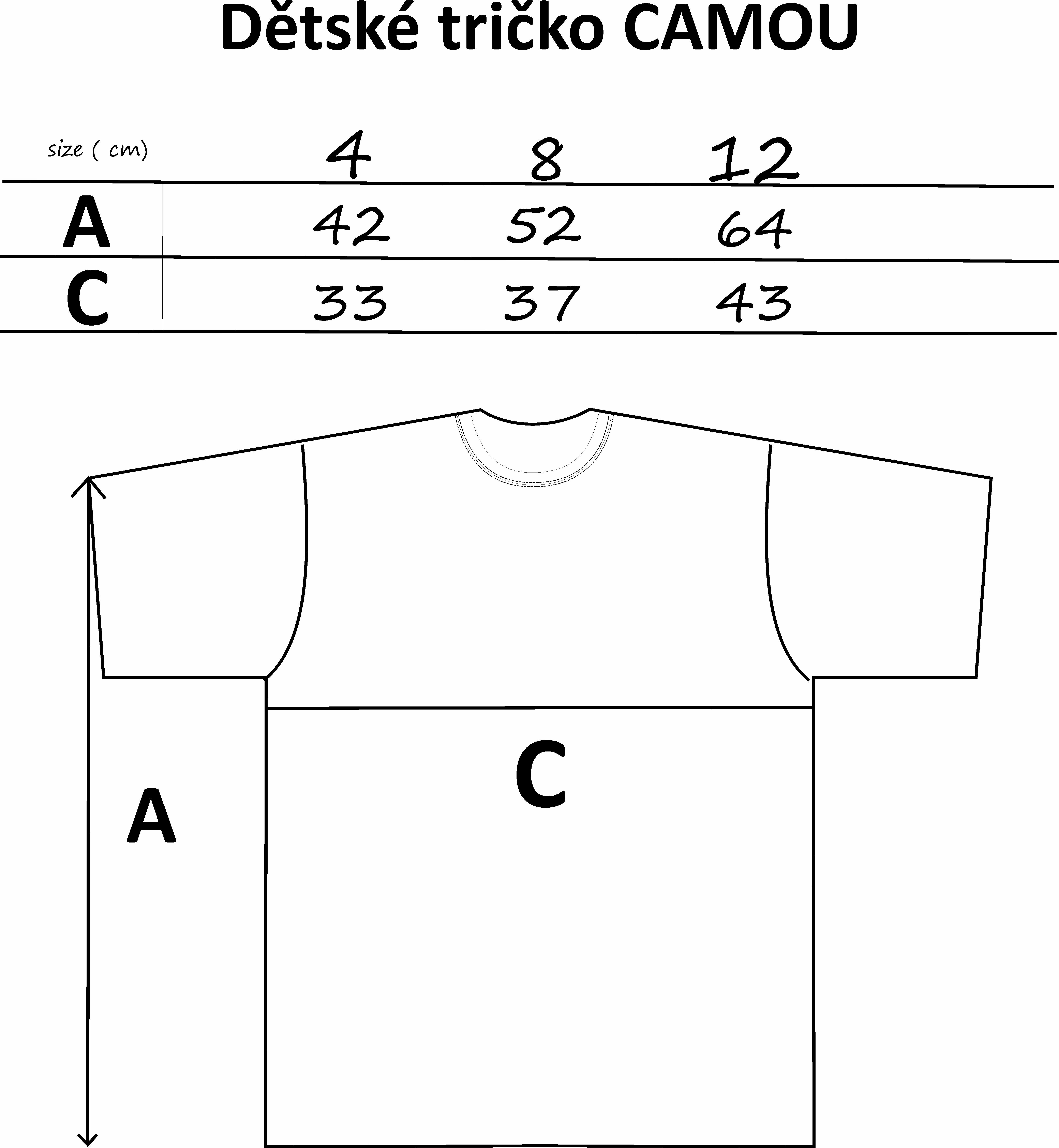 V nabídce jsou dětská (4-8 let, 6-10 let, 8-12 let), dámská (S, M, L, XL) i pánská (M, L, XL, XXL, XXXL). Camou tak může být celá rodina ;)