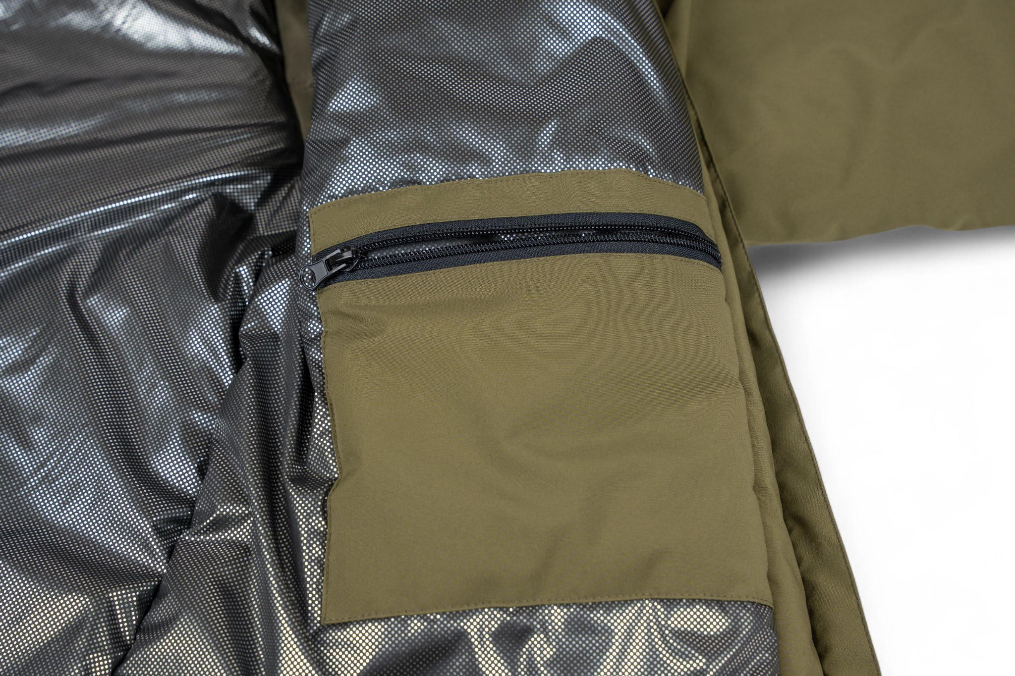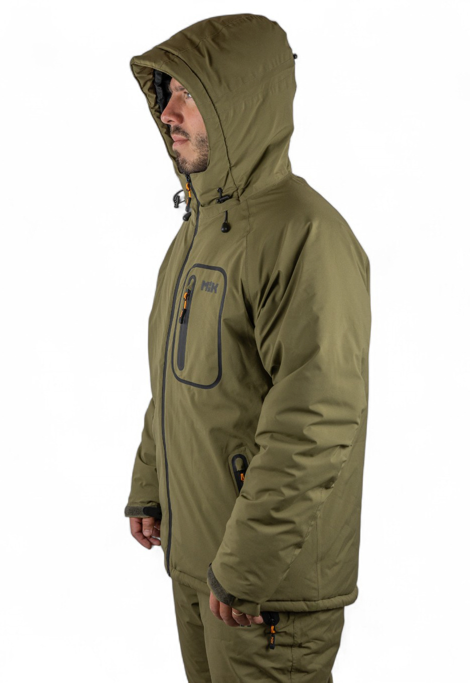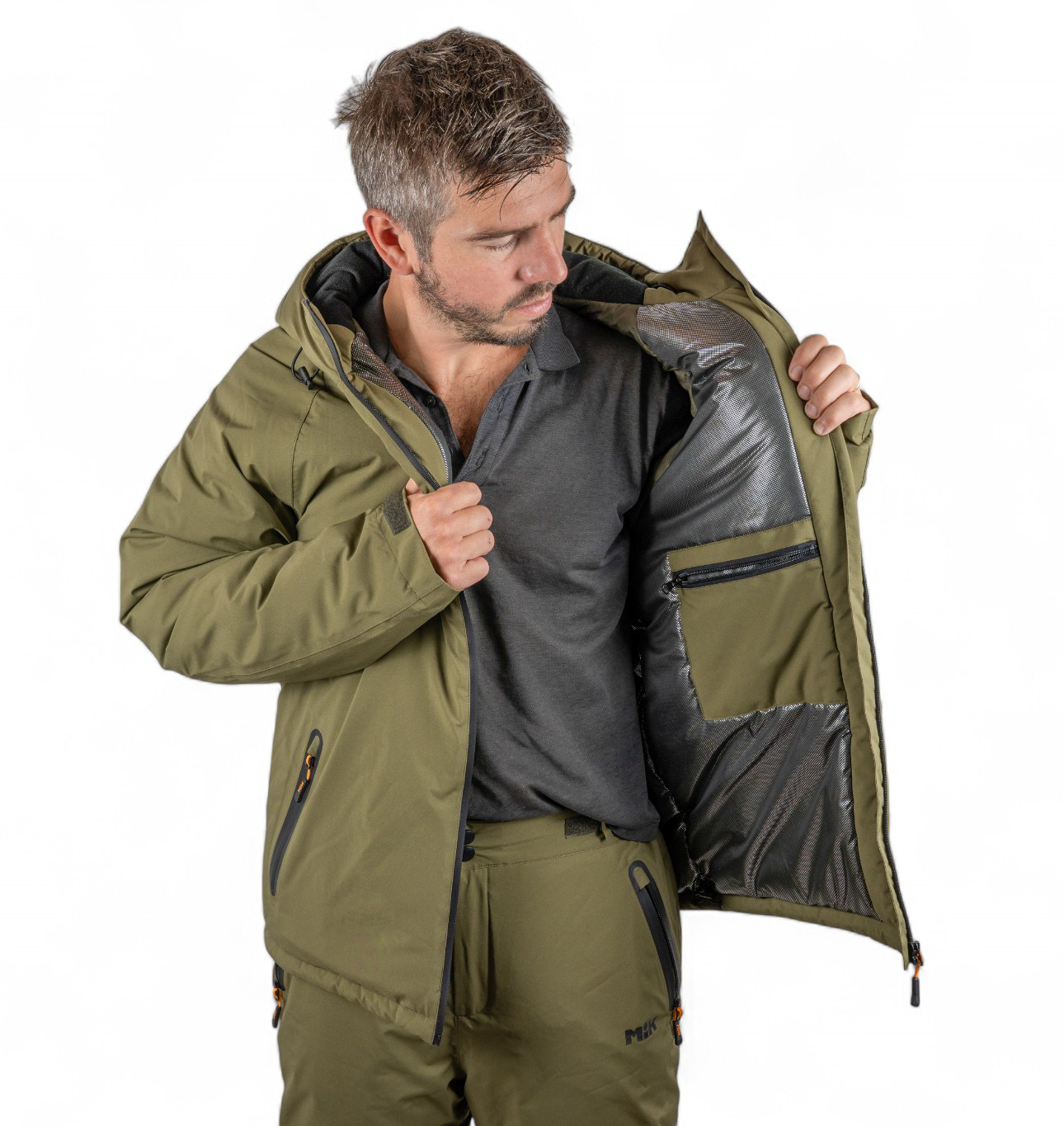 Bunda Mikbaits Thermo Exclusive je dokonale zateplená, voděodolná a prodyšná. Nemusíte tak mít obavu vyrazit k vodě, do města nebo do přírody v chladných či přímo mrazivých dnech. Bunda má voděodolnost 10 000 mm vodního sloupce, stejnou hodnotu má i prodyšnost (10 000 mm). Vnitřní stříbrná folie odráží teplo zpět k tělu a spolu s výplní z dutého vlákna vytváří maximální tepelný komfort. K tomu napomáhá i zateplená nastavitelná kapuce s vnitřním fleecem a stahovací manžety na rukávech. Stejně tak lze dotáhnout i spodní okraj bundy, aby vám neutíkalo teplo. Vzadu je bunda prodloužená aby lépe chránila vaše záda. Bunda je vybavena čtyřmi kapsami, z toho jednou vnitřní a třemi vnějšími – jednou na hrudi a dvěma s vnitřním fleecem v dolní části na ruce. Všechny tři mají vodotěsné zipy.