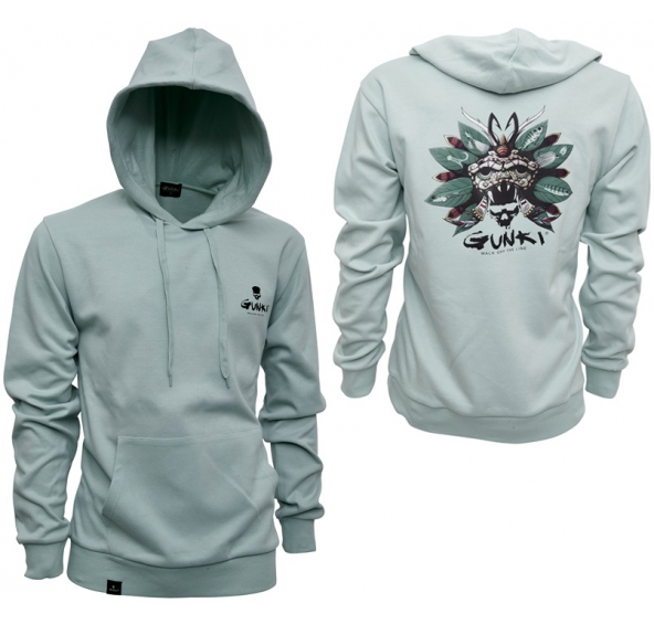 Pohodlná mikina s logem Gunki. Má nastavitelnou kapuci a velkou klokaní kapsu. Příjemný a poddajný materiál. Složení: 60% bavlna, 40% polyester, gramáž látky 280g/m2.