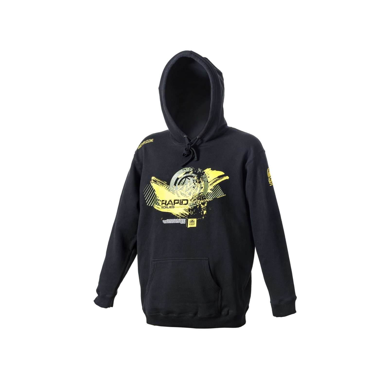 Teplá mikina s kapucí a přední kapsou ze 100% bavlny s atraktivními aplikacemi na zádech, na hrudi a na rukávu.