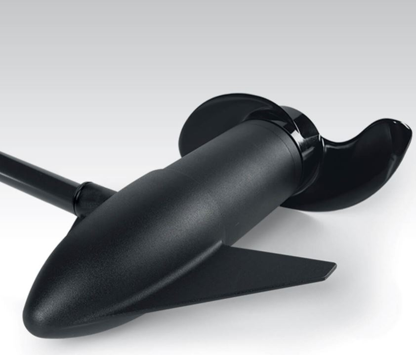 Řídící tyč je z karbono-plastového kompozitu (noha motoru) a je 3x odolnější, než by byla vyrobená z kovu - při nárazu o dno se tyč ohne, nezlomí se ani nedojde k deformaci. Kompozit navíc nekoroduje.