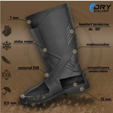 Celý popisCeloroční holínky s hřejivou vložkou DRY WALKER model Xtrack Short. Vyrobeno z materiálu EVA, který je odolný a přitom lehký a zcela voděodolný. Uvnitř nachází vyjímatelná hřejivá vložka zakončená manšestrem. Speciální absorpční podložka a protiskluzová úprava v podrážce zvyšují komfort používání. Je doplněn protektorem, který zajišťuje dobrou přilnavost na kluzkém blátivém povrchu.