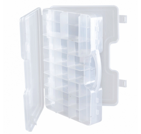 Velmi praktický box na nástrahy a rybářské příslušenství. Do oboustranné krabičky se vám vejde mnoho drobností od háčků přes olůvka až po gumy. Díky průsvitnému materiálu vše uvidíte a nebudete muset potřebné věci složitě hledat.