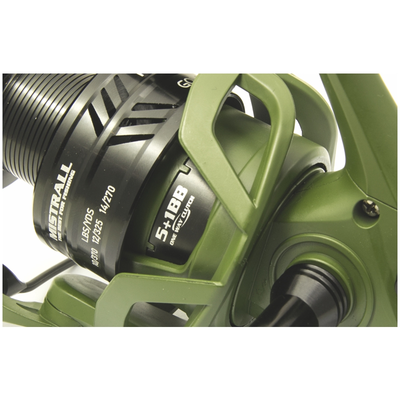 Naviják Mistrall Goliat Carp 40 je vybaven volnoběžným systémem a pěti kuličkovými ložisky plus jedním opěrným. Lehká konstrukce z kvalitních slitin a počítačem vyvážený rotor zajišťují plynulý chod a spolehlivost. Hliníková klička a dokonalé navíjení vlasce jsou zárukou komfortního používání.
