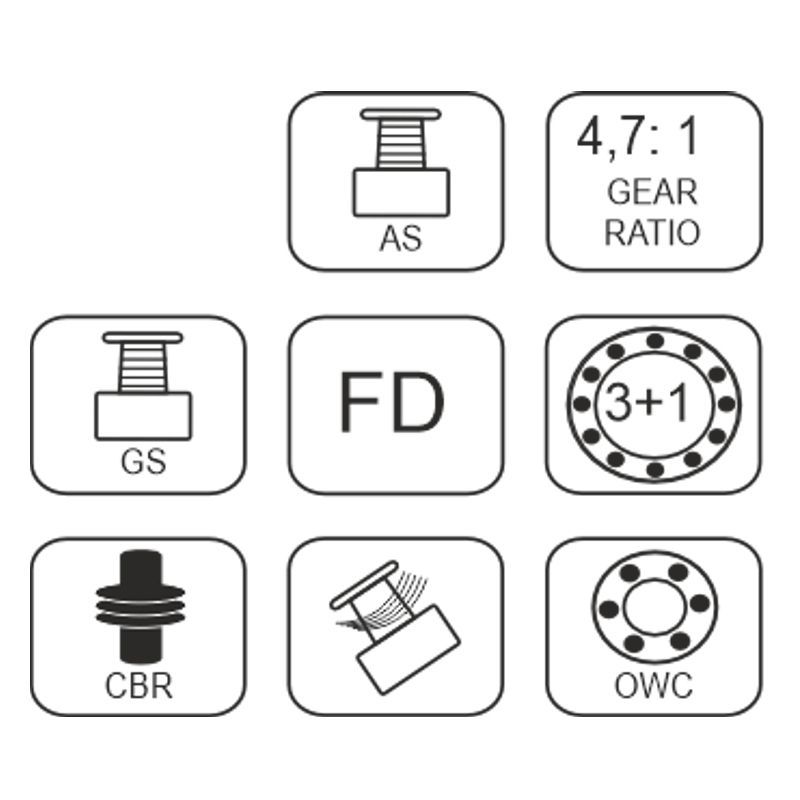 Orcus je naviják se třemi kuličkovými a jedním jednocestným ložiskem. Dodávaný s náhradní grafitovou cívkou. Přední brzda je citlivá a silná. Jednou z největších výhod Orcusu je jeho nízká hmotnost, pouhých 374 g. Hmotnost: 374 g Náhradní cívka Velikost: 60 Ložiska: 3+1 Návin: 0,30/320 - 0,32/280 - 0,35/240 mm/m ...