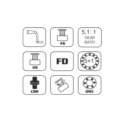 Naviják vybavený pěti kuličkovými ložisky a jedním jednocestným ložiskem. Díky preciznímu zpracování a vysoké kvalitě materiálů splní požadavky jak profesionálních, tak i začínajících rybářů. Přední brzda poskytuje plynulé a přesné nastavení odporu při zdolávání ryby, vyvážený rotor zajišťuje hladký chod. V balení dvě grafitové cívky. Technické údaje: Velikost: 30 Počet ložisek: 5+1 Převodový poměr: 5,1:1 Hmotnost: 243 g Kapacita cívky: Ø 0,20 mm / 185 m Ø 0,22 mm / 150 m Ø 0,25 mm / 120 m ...