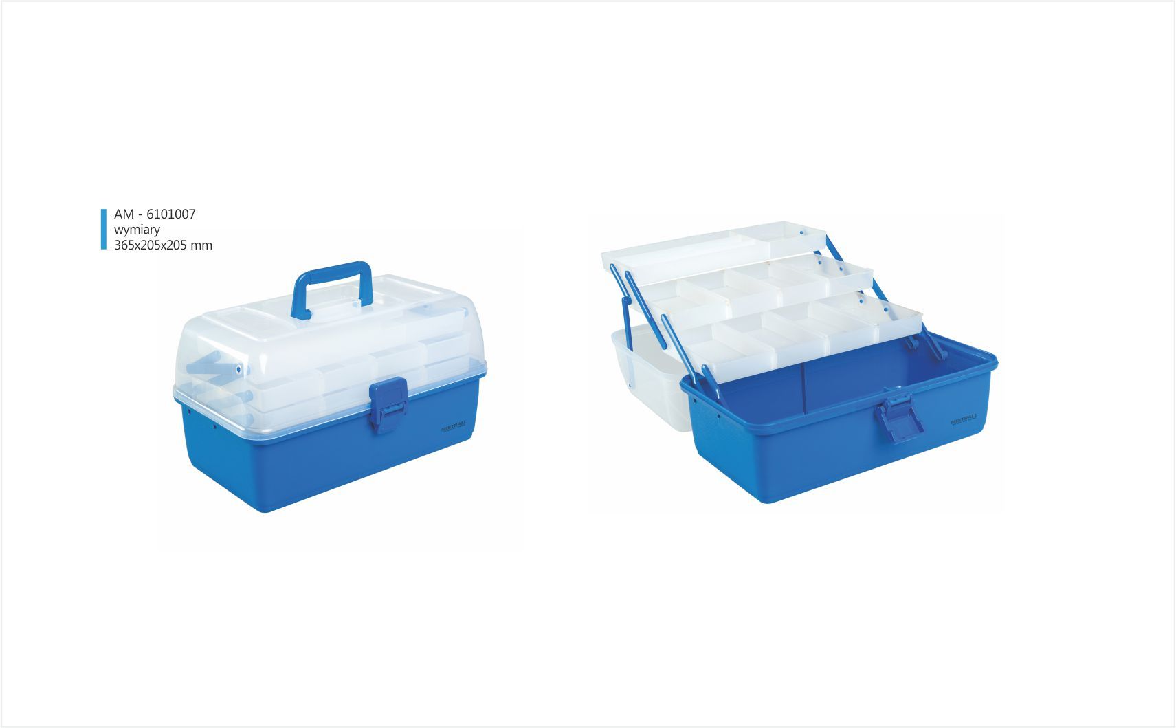 Kufřík Mistrall je vyroben z měkčeného plastu, tudíž je vhodný i k ukládání různých gumových nástrah. Je praktický, lehký a odolný.