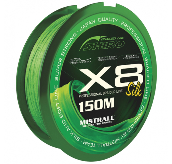 Popis produktu Mistrall pletená šňůra Shiro Silk X8 0,41mm 150m zelená