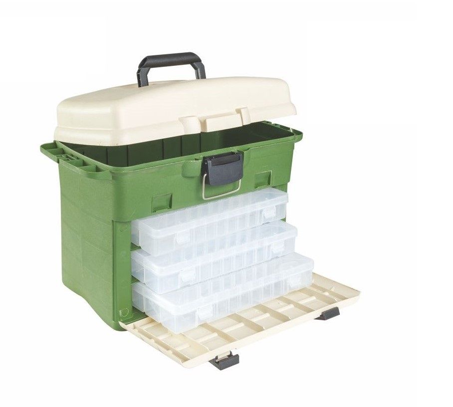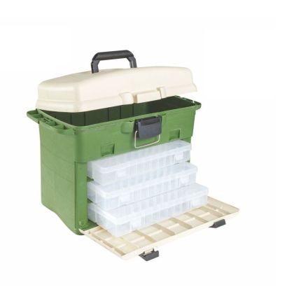 Velmi praktický a funkční rybářský box vyrobený z tvrdého plastu. Kufr má tři velké odnímatelné krabičky s nastavitelnými přihrádkami, ve kterých si můžete bez problémů uložit veškerou rybářskou bižuterii. Do hlavního prostoru se vám pak vejdou větší věci.
