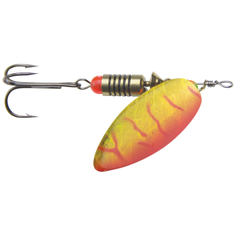 Univerzální rotační třpytka, vhodná na všechny druhy dravých ryb. Je určena do proudných úseků řek a potoků. Skvěle funguje také v podjezích ba boleny. Točí se i při velmi pomalém tažení. Značkový VMC trojháček je velmi ostrý a pevný, nehrozí tedy, že by se ryba při záběru nepíchla.