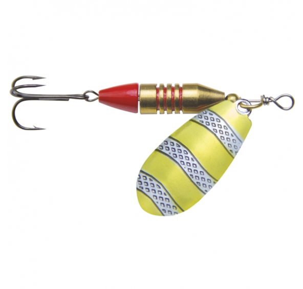 Univerzální rotační třpytka, vhodná na všechny druhy dravých ryb. Je určena do proudných úseků řek a potoků. Točí se i při velmi pomalém tažení. Značkový VMC trojháček je velmi ostrý a pevný, nehrozí tedy, že by se ryba při záběru nepíchla.