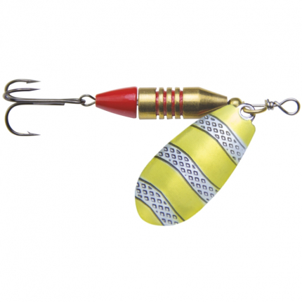 Univerzální rotační třpytka, vhodná na všechny druhy dravých ryb. Je určena do proudných úseků řek a potoků. Točí se i při velmi pomalém tažení. Značkový VMC trojháček je velmi ostrý a pevný, nehrozí tedy, že by se ryba při záběru nepíchla.
