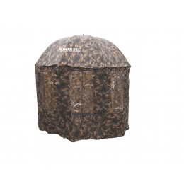 Rybářský deštník z materiálu 210D, vodní sloupec 3000 mm. Vybaven nastavitelným vrchlíkem, díky kterému lze změnit úhel sklonu až o 45 stupňů. Deštník má zástěnu, ve které se nacházejí 3 okna. Maskáčový vzor je u vody nenápadnější a dodává pocit lepšího splynutí s přírodou.