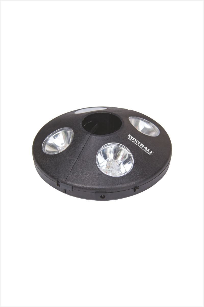 Celý popisVelká svítilna uzpůsobená k připnutí pod rybářský deštník. 24 LED světel je pravidelně rozmístěno do 4 bodů tak, aby lampa osvětlila rovnoměrně co největší plochu. Moderní LED žárovky zajišťují skvělé osvětlení při velmi nízké spotřebě. Do lampy se dávají 3 AA baterky. Samozřejmostí je možnost dobíjet baterky přímo ve svítilně.