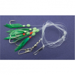 Systémy na lov sleďů jsou dostupné v mnoha atraktivních barvách a vyrobené z materiálu imitujícího rybí šupiny. V závislosti na provedení jsou osazeny pěti nebo šesti háčky. Informace o dostupných velikostech háčků a průměrech vlasců najdeš níže. Každý přívěsek obsahuje zelené korálky, které ve tmě svítí, což dále zvyšuje účinnost lovu. Průměr vlasce: 0,50 mm Velikost háčku: 1 ...