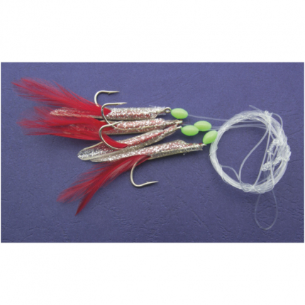 Treskové systémy jsou osazeny třemi nebo čtyřmi háčky podle konkrétního vzoru. Vlasec má průměr 0,6 mm nebo 0,7 mm. Přívěsky svým vzhledem připomínají přirozenou potravu tresky, jsou k dispozici v různých barvách a provedeních. Každý přívěsek je doplněn o zelené korálky. Průměr vlasce: 0,60 mm Velikost háčku: 3/0 ...