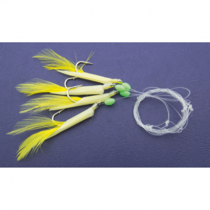 Treskové systémy jsou osazeny třemi nebo čtyřmi háčky podle konkrétního vzoru. Vlasec má průměr 0,6 mm nebo 0,7 mm. Přívěsky svým vzhledem připomínají přirozenou potravu tresky, jsou k dispozici v různých barvách a provedeních. Každý přívěsek je doplněn o zelené korálky. Průměr vlasce: 0,60 mm Velikost háčku: 3/0 ...
