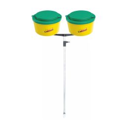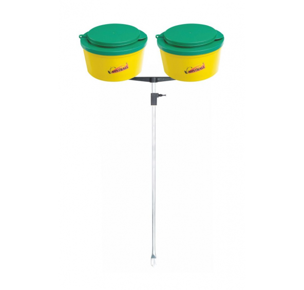 Kvalitní teleskopický stojan se dvěma krabičkami na nástrahy od známé značky Mistrall, vyrobený z duralu a plastu. Stojan je velmi snadno složitelný, stačí zapíchnout do země a přichytit krabičky, které lze samozřejmě používat i samostatně. Tyčku na zapíchnutí můžete použít i jako klasickou vidličku nebo na ni namontovat signalizátor záběru, má totiž klasický 9mm závit. Velký rozsah výškového nastavení umožňuje přizpůsobení stojanu různým podmínkám rybolovu.