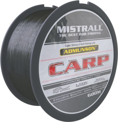 Mistrall vlasec Admunson – Carp black 0, 30 mm Velmi odolný vlasec s minimální pamětí a velkou odolností proti oděru. Díky tmavé barvě není vlasec ve vodě téměř vidět. Vhodný na položenou, plavanou a feeder....